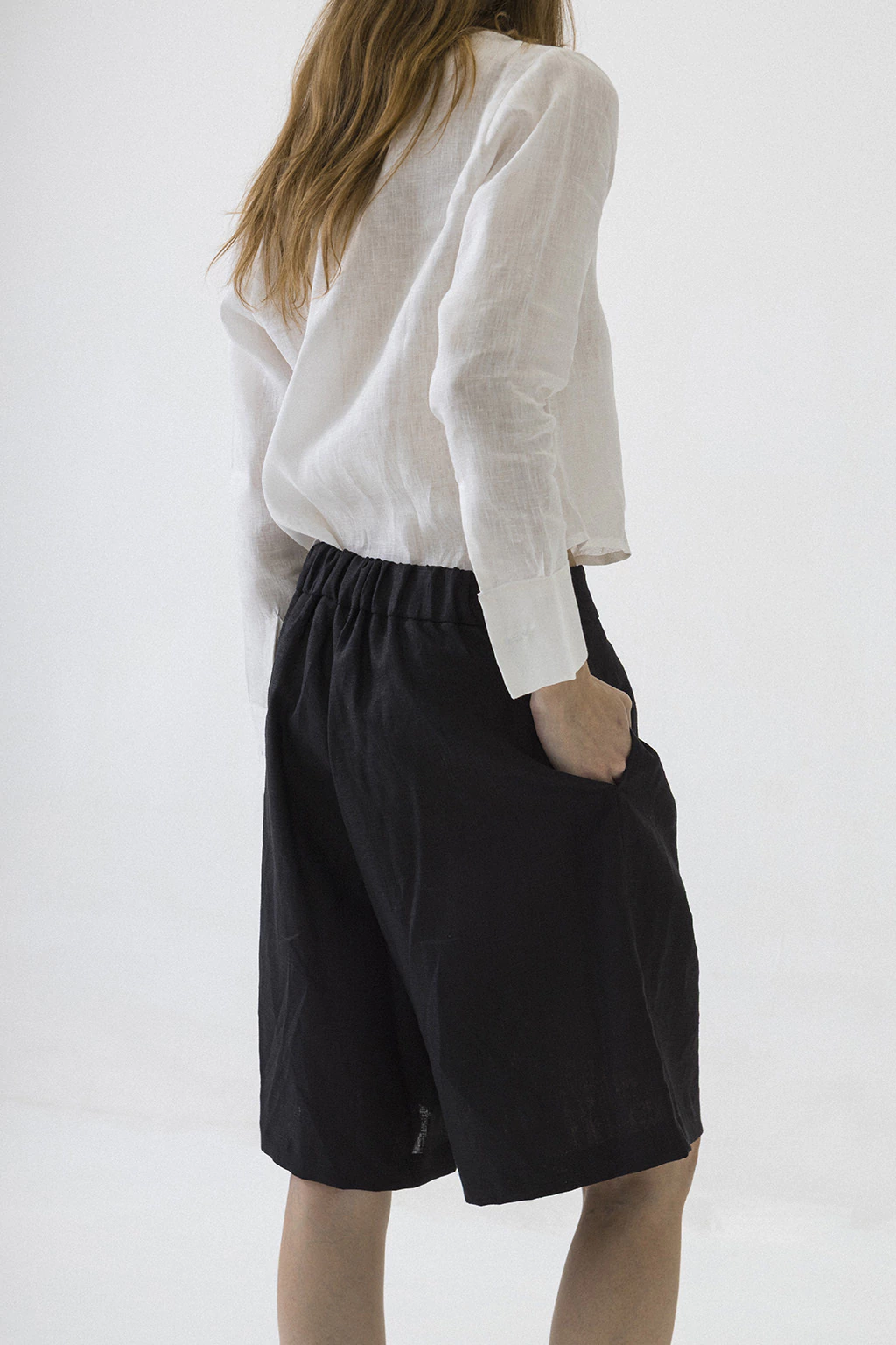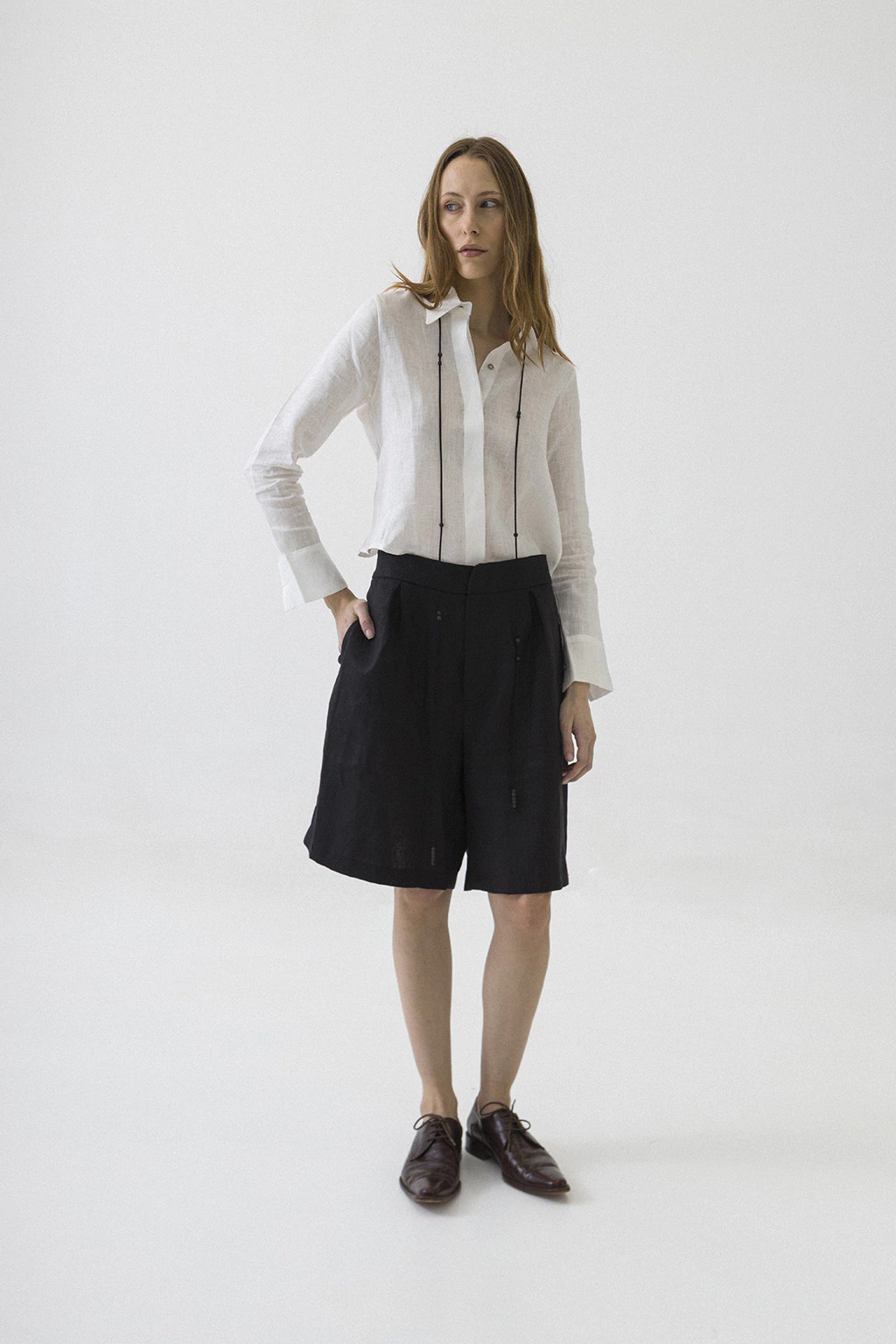 Descripción Bermuda con cintura tiro alto, tiene pinzas delanteras y elástico en cintura trasera Nuestra bermuda Pinzas es una prenda de media estación y de verano
