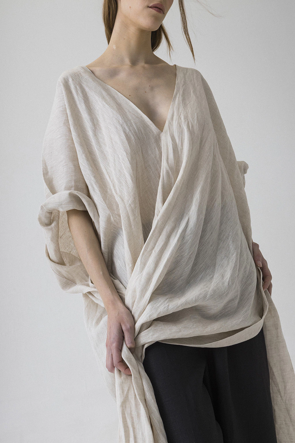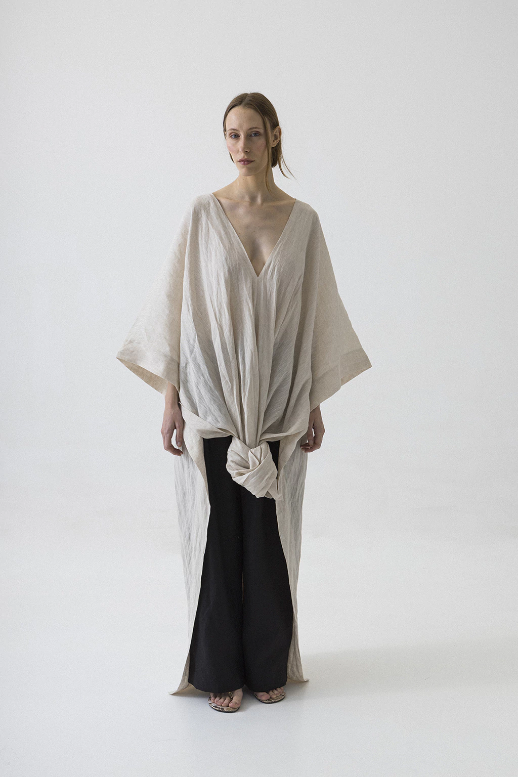 DescripciónTúnica con escote en V delantero y traseroTiene tajos laterals inferioresNuestra Túnica V es una prenda de media estación y de veranoComposiciónLino puro 7 onzasEl lino puro se caracteriza por ser un género natural, fresco y suave al tacto con la piel